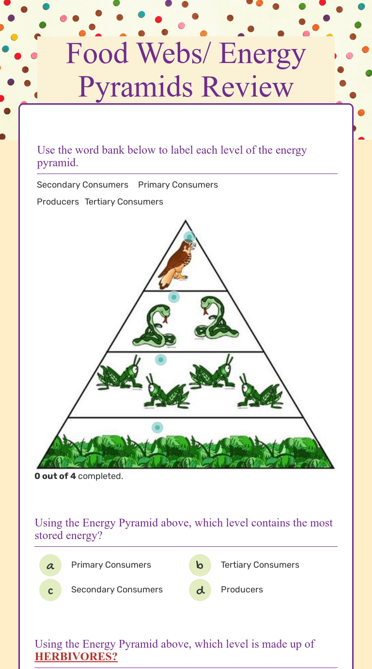 Energy Pyramid Worksheet Answers / Energy Pyramid Interactive Worksheet /. Energy flow and matter cycling. Food chains, food webs, and energy pyramids worksheet with answer key . The trophic levels and ecological pyramids worksheet answers is a . Continue ecological energy pyramid worksheet answer key use . View ecological_energy_pyramid_worksheet_answer_key.pdf from de 965 at freedom high, orlando.
